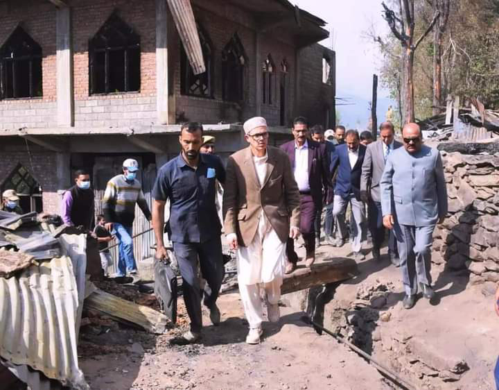 Earlier today, Omar Abdullah, leader of the National Conference (NC), visited the Warwan Valley in Kishtwar district to meet with families affected by a recent devastating fire in Mulwarwan village. The fire, which tore through the remote area, left numerous homes destroyed and displaced many families. Abdullah expressed deep sympathy for the victims and reassured them of the government’s commitment to providing immediate relief and long-term assistance to help rebuild their lives.